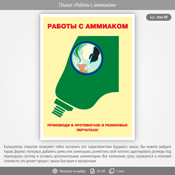 Плакат «Работы с аммиаком» (Агит-08, 1 лист) в Кызыле купить