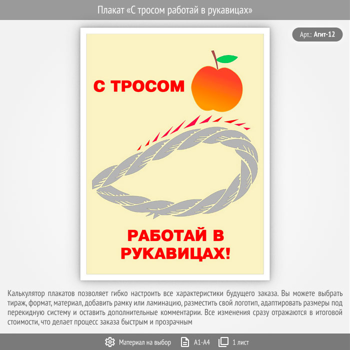 Плакат «С тросом работай в рукавицах» (Агит-12, 1 лист) в Кызыле купить