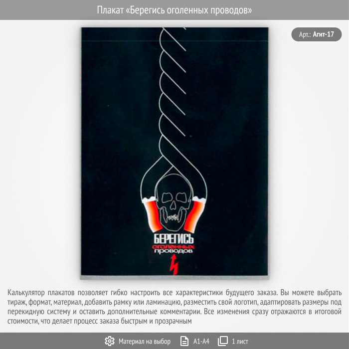Плакат «Берегись оголенных проводов» (Агит-17, 1 лист) в Кызыле купить