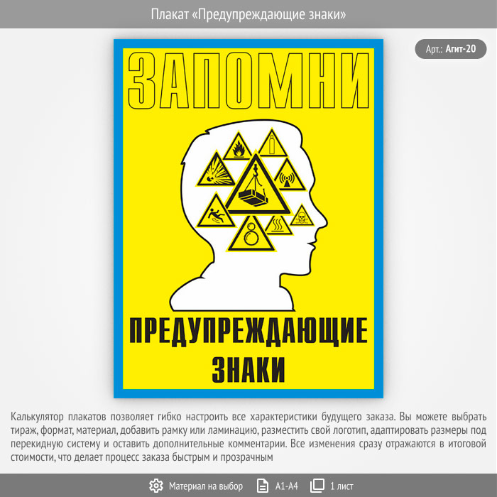 Плакат «Предупреждающие знаки» (Агит-20, 1 лист) в Кызыле купить