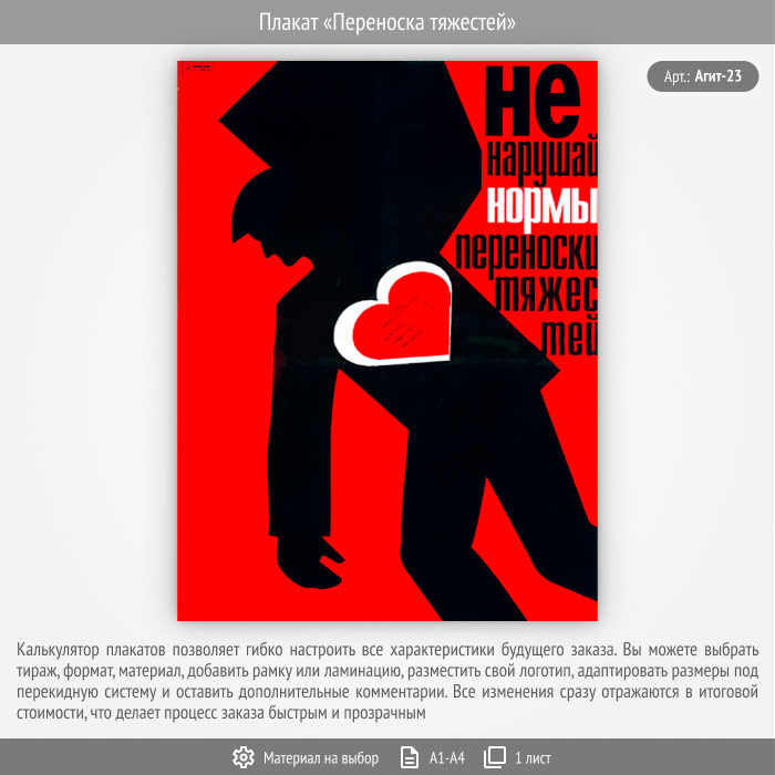 Плакат «Переноска тяжестей» (Агит-23, 1 лист) в Кызыле купить