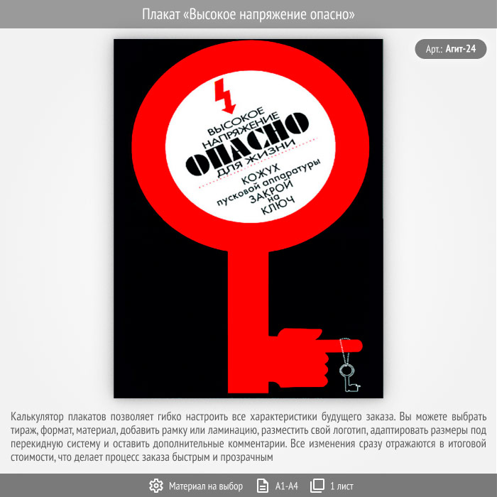 Плакат «Высокое напряжение опасно» (Агит-24, 1 лист) в Кызыле купить
