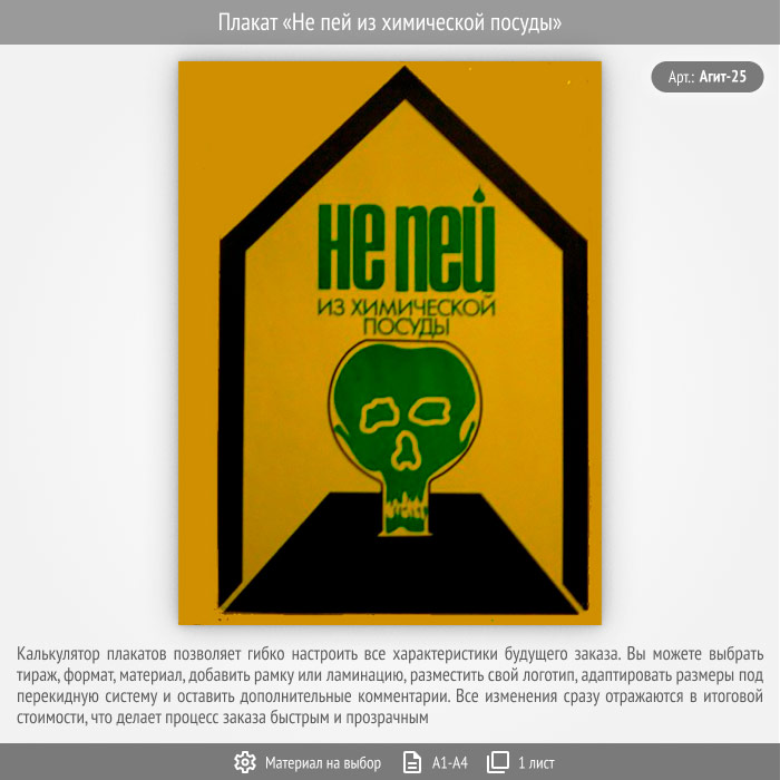 Плакат «Не пей из химической посуды» (Агит-25, 1 лист) в Кызыле купить