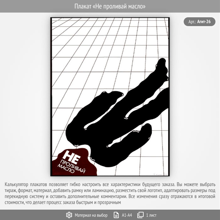 Плакат «Не проливай масло» (Агит-26, 1 лист) в Кызыле купить