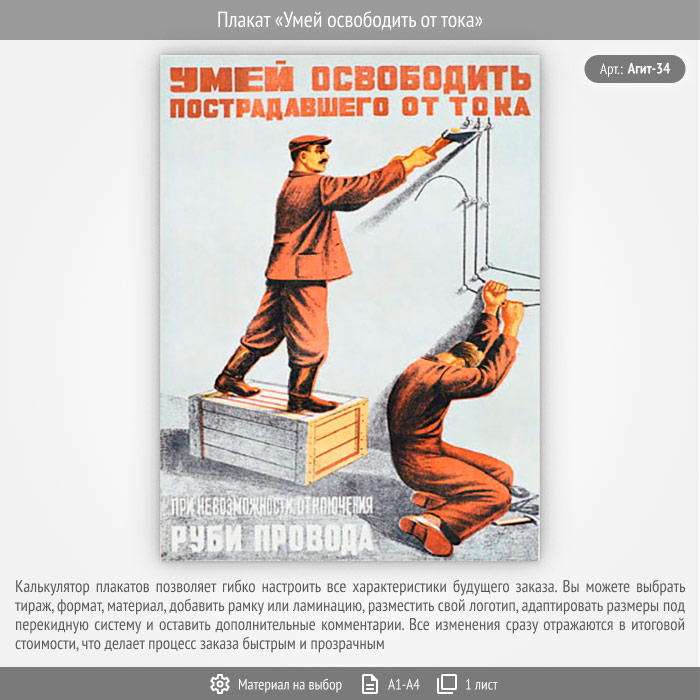 Плакат «Умей освободить от тока» (Агит-34, 1 лист) в Кызыле купить