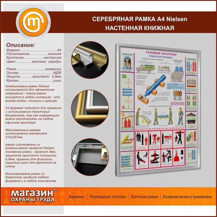 Багетная настенная рамка «Nielsen» А4 формата, книжная, матовое серебро в Кызыле купить