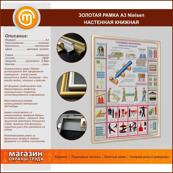 Багетная настенная рамка «Nielsen» А3 формата, книжная, матовое золото в Кызыле купить
