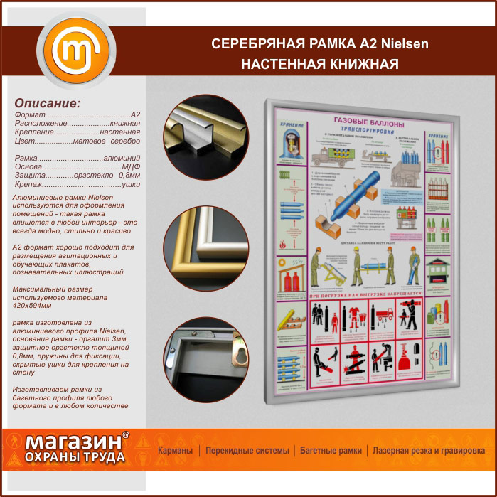 Багетная настенная рамка «Nielsen» А2 формата, книжная, матовое серебро в Кызыле купить
