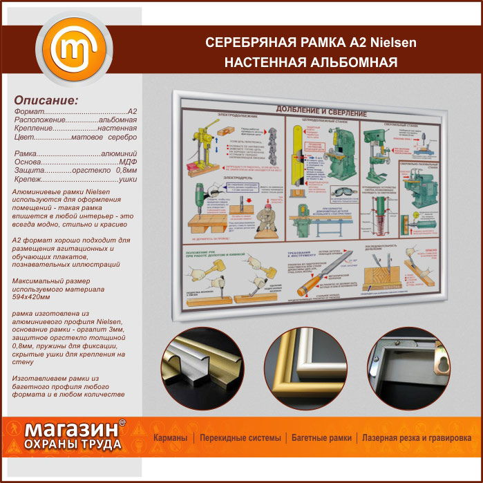 Багетная настенная рамка «Nielsen» А2 формата, альбомная, матовое серебро в Кызыле купить