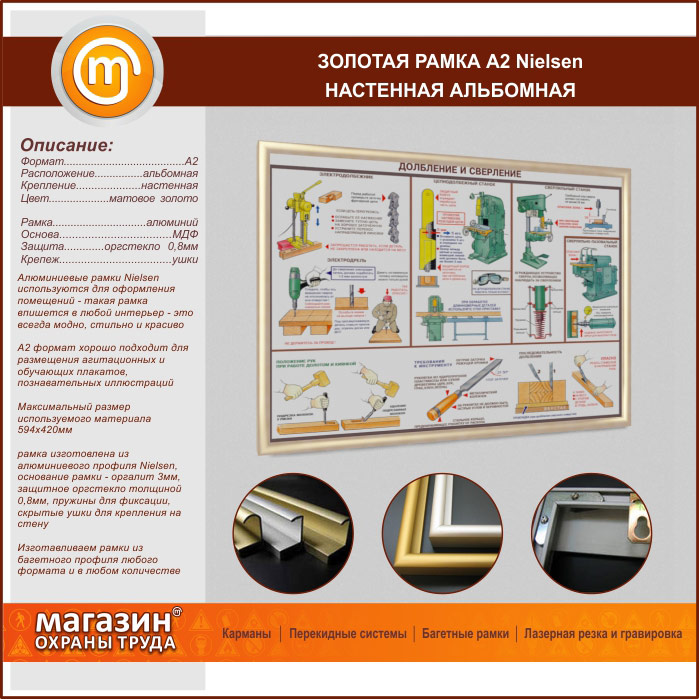 Багетная настенная рамка «Nielsen» А2 формата, альбомная, матовое золото в Кызыле купить
