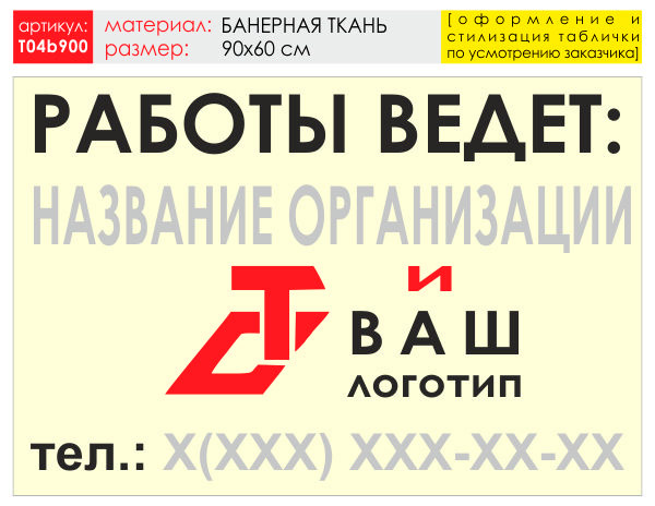 Баннер «Работы ведет», T04 (баннерная ткань, 90х60 см) в Кызыле купить