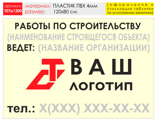Баннер «Работы по строительству», T07 (пластик 4 мм, 120х90 см) в Кызыле купить