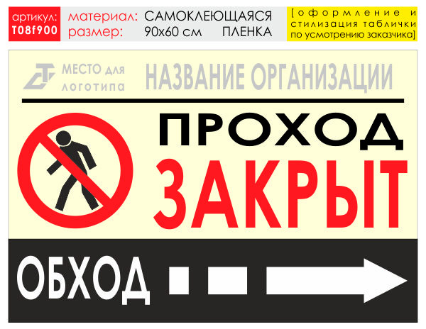 Баннер «Обход справа», T08 (самоклеящаяся плёнка, 90х60 см) в Кызыле купить