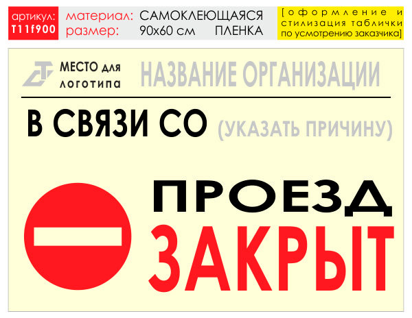 Баннер «Проезд закрыт», T11 (самоклеящаяся плёнка, 90х60 см) в Кызыле купить
