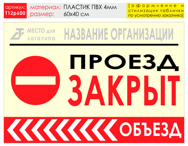Баннер «Объезд слева», T12 (пластик 4 мм, 60х40 см) в Кызыле купить
