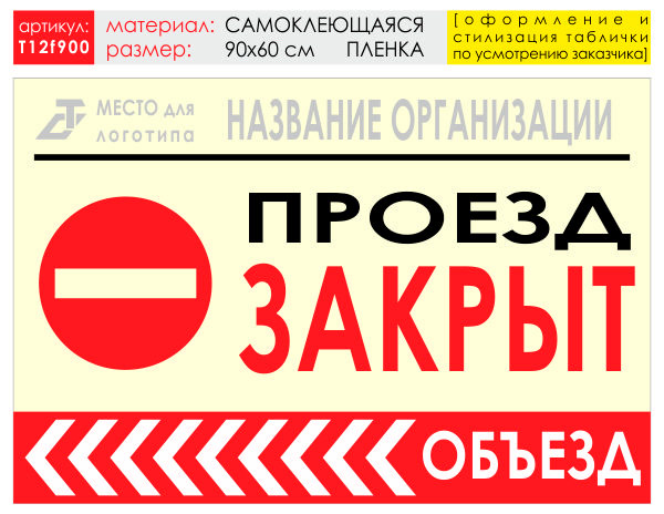 Баннер «Объезд слева», T12 (самоклеящаяся плёнка, 90х60 см) в Кызыле купить