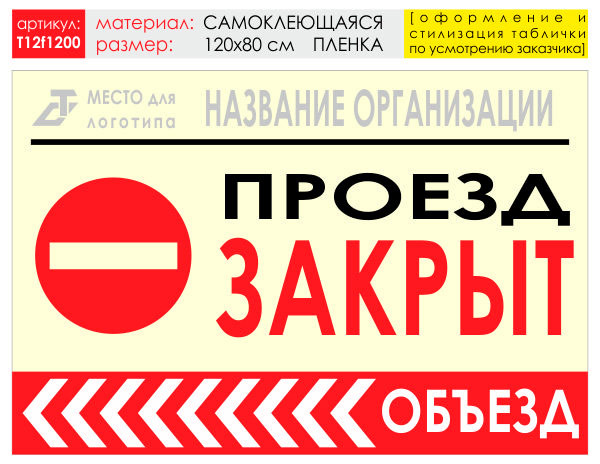 Баннер «Объезд слева», T12 (самоклеящаяся плёнка, 120х90 см) в Кызыле купить
