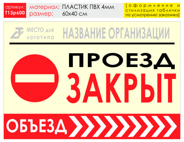 Баннер «Объезд справа», T13 (пластик 4 мм, 60х40 см) в Кызыле купить