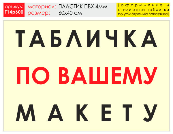 Баннер «Табличка по Вашему макету», T14 (пластик 4 мм, 60х40 см) в Кызыле купить