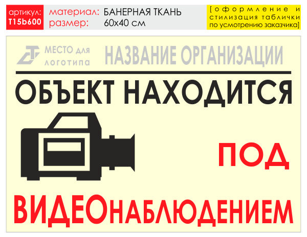 Баннер «Видеонаблюдение», T15 (баннерная ткань, 60х40 см) в Кызыле купить