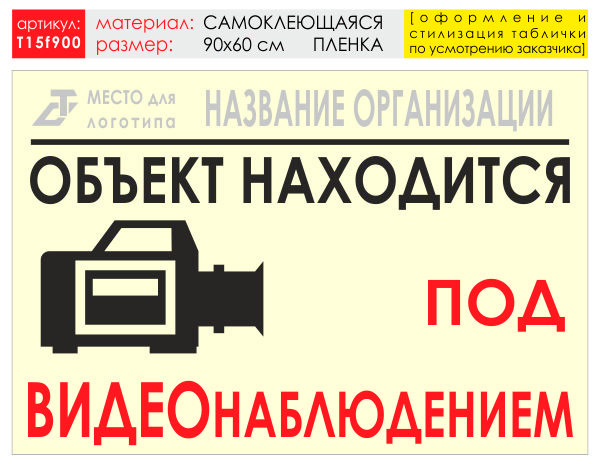 Баннер «Видеонаблюдение», T15 (самоклеящаяся плёнка, 90х60 см) в Кызыле купить