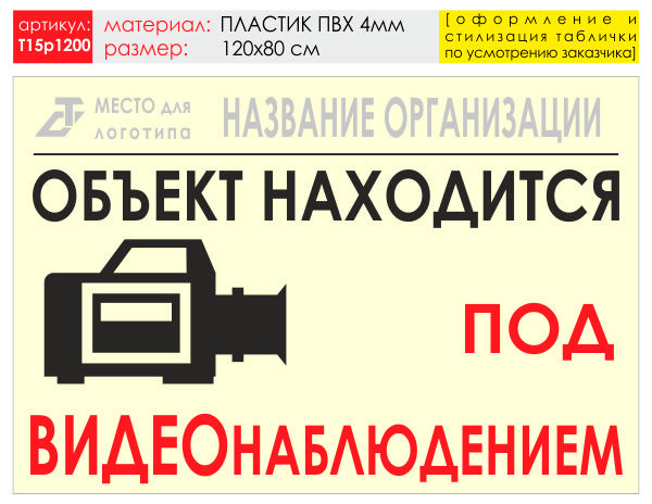 Баннер «Видеонаблюдение», T15 (пластик 4 мм, 120х90 см) в Кызыле купить