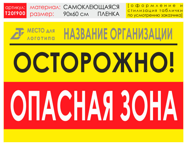 Баннер «Опасная зона», T20 (самоклеящаяся плёнка, 90х60 см) в Кызыле купить