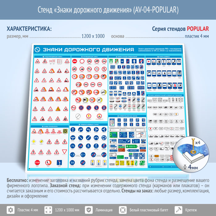 Стенд «Знаки дорожного движения» (AV-04-POPULAR) в Кызыле купить