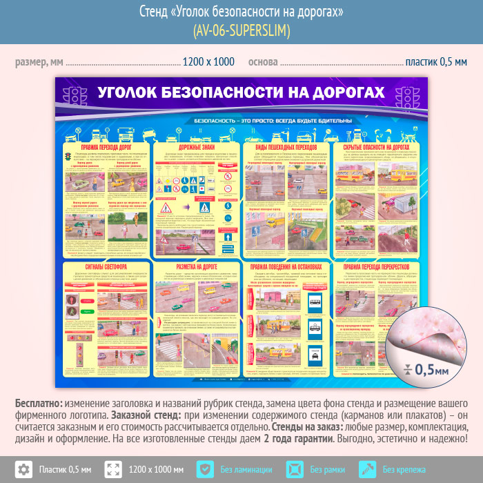 Стенд «Уголок безопасности на дорогах» (AV-06-SUPERSLIM) в Кызыле купить