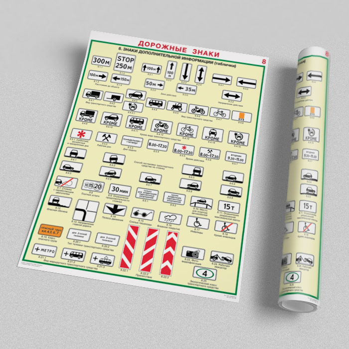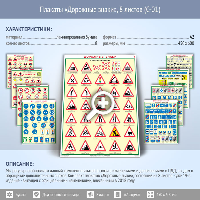 Плакаты «Дорожные знаки» (С-01, ламинированная бумага, А2, 8 листов) в Кызыле купить