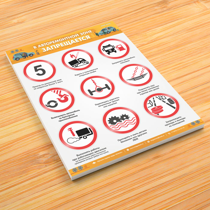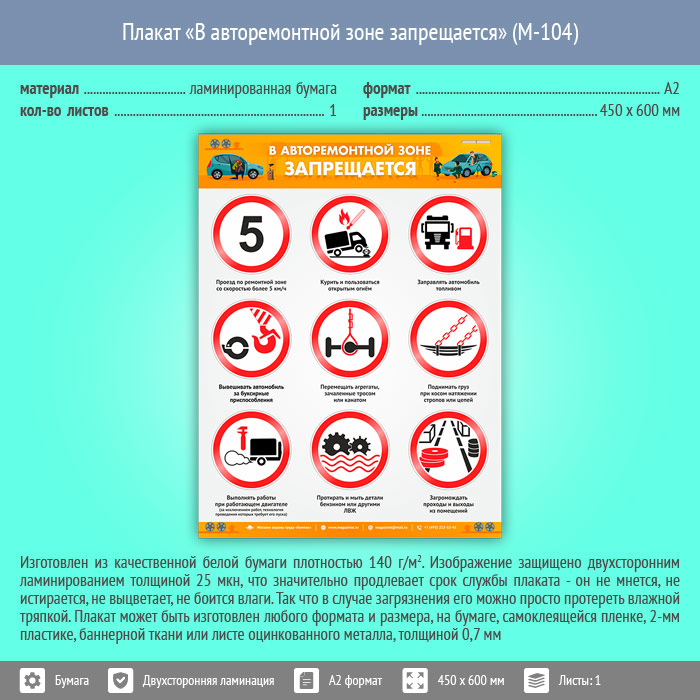Плакат «В авторемонтной зоне запрещается» (М-104, ламинированная бумага, А2, 1 лист) в Кызыле купить