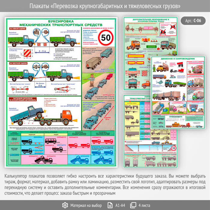 Плакаты «Перевозка крупногабаритных и тяжеловесных грузов» (С-06, 4 листа) в Кызыле купить