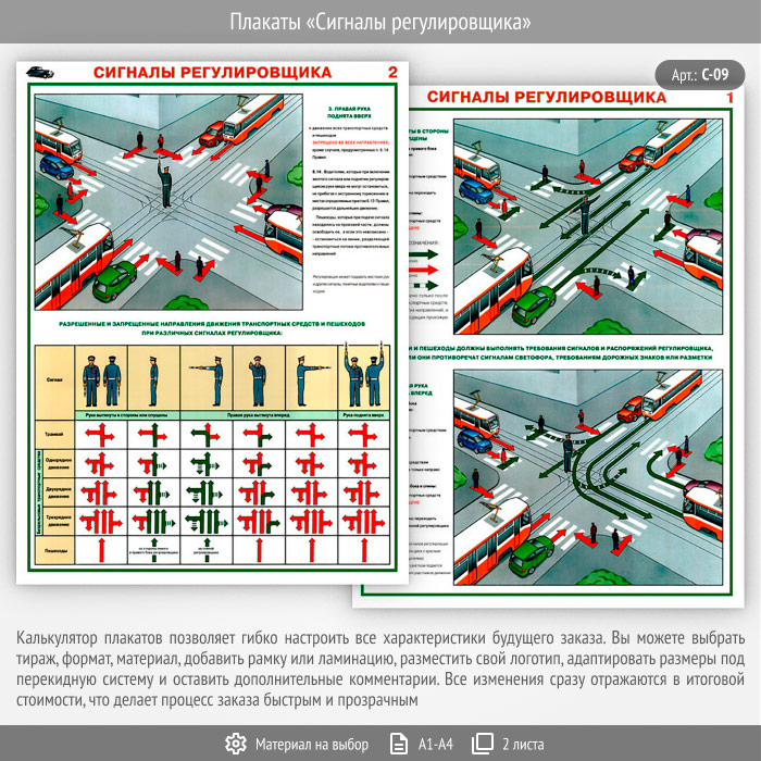 Плакаты «Сигналы регулировщика» (С-09, 2 листа) в Кызыле купить
