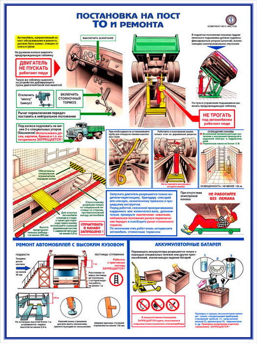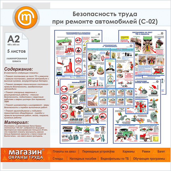 Плакат «Техника безопасности при ремонте автомобилей» (С-02, ламинированная бумага, А2, 5 листов) в Кызыле купить