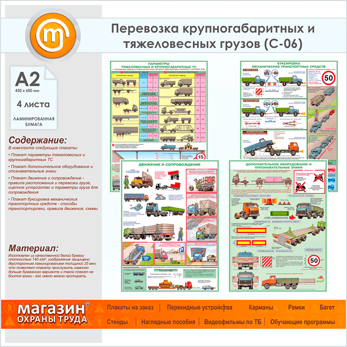 Плакаты «Перевозка крупногабаритных и тяжеловесных грузов» (С-06, ламинированная бумага, А2, 4 листа) в Кызыле купить