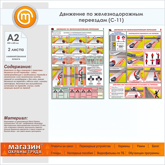 Плакаты «Движение по железнодорожным переездам» (С-11, ламинированная бумага, А2, 2 листа) в Кызыле купить