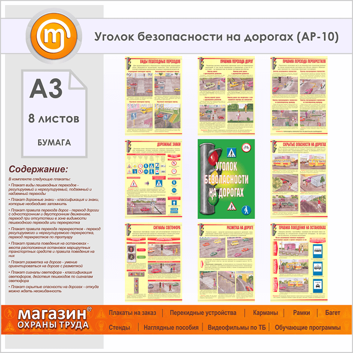 Плакаты «Уголок безопасности на дорогах» (АР-10, бумага, А3, 8 листов) в Кызыле купить