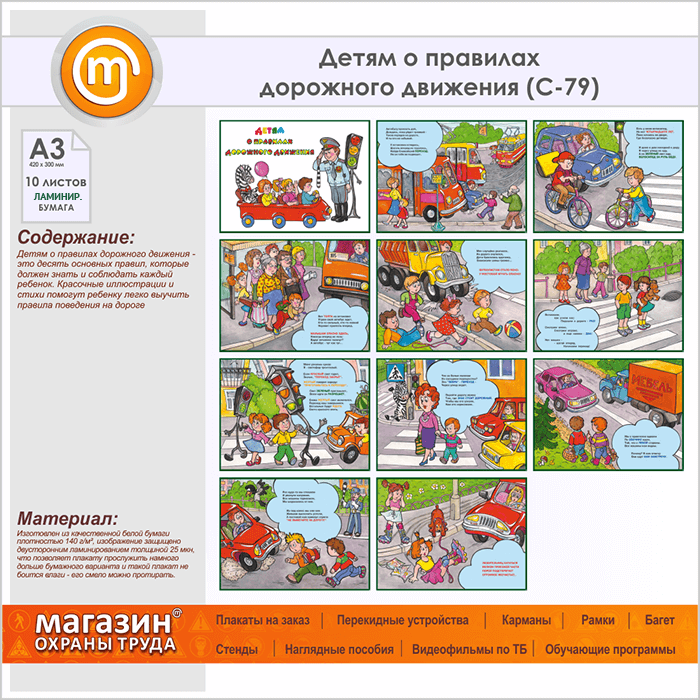 Плакаты «Детям о правилах дорожного движения» (С-79, ламинированная бумага, А3, 10 листов) в Кызыле купить