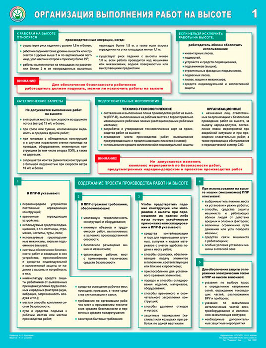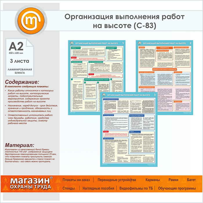 Плакаты «Организация выполнения работ на высоте» (С-83, ламинированная бумага, А2, 3 листа) в Кызыле купить