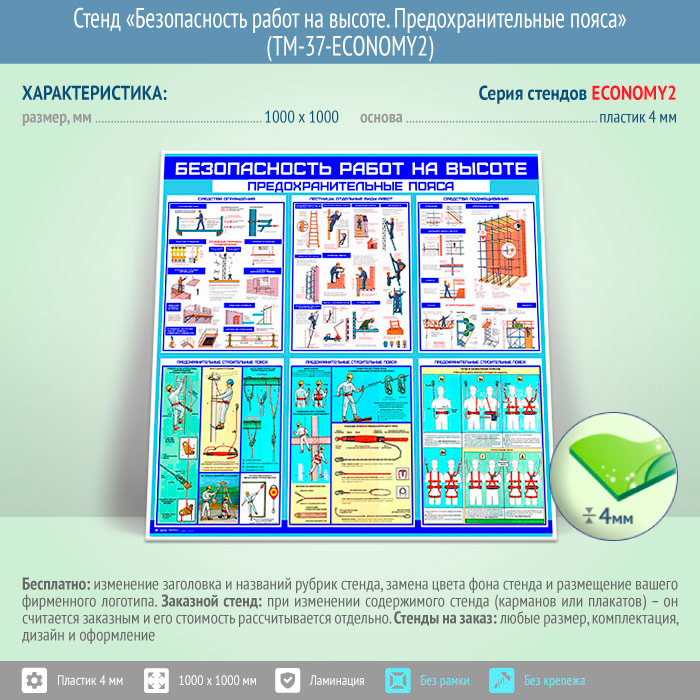 Стенд «Безопасность работ на высоте. Предохранительные пояса» (TM-37-ECONOMY2) в Кызыле купить
