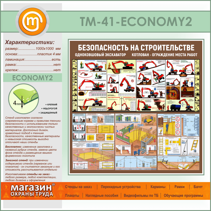 Стенд «Безопасность земляных работ. Экскаватор, котлован» (TM-41-ECONOMY2) в Кызыле купить