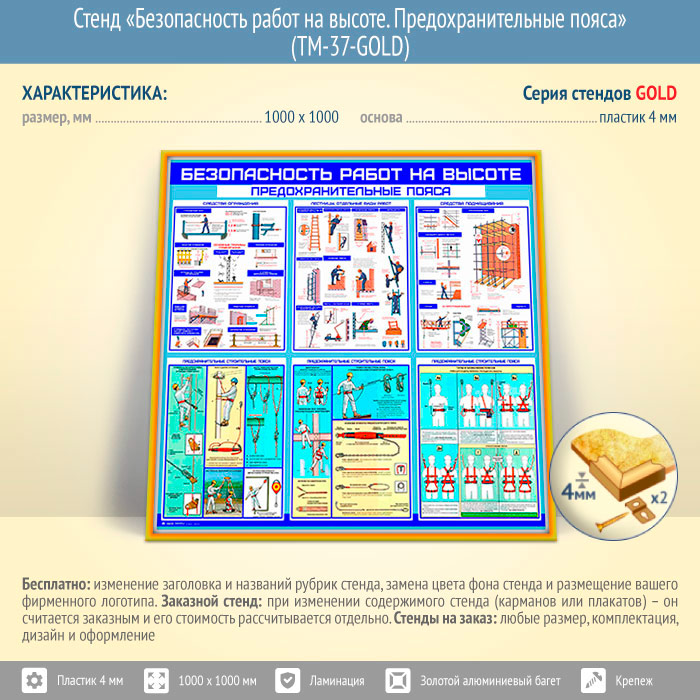 Стенд «Безопасность работ на высоте. Предохранительные пояса» (TM-37-GOLD) в Кызыле купить