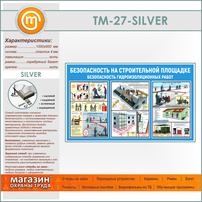 Стенд «Безопасность на строительной площадке. Безопасность гидроизоляционных работ» (TM-27-SILVER) в Кызыле купить
