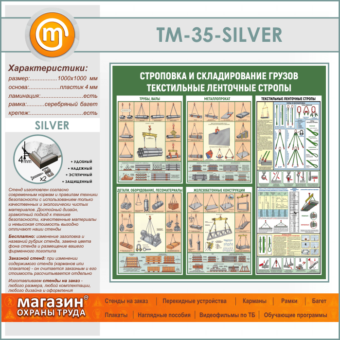 Стенд «Строповка и складирование грузов. Текстильные ленточные стропы» (TM-35-SILVER) в Кызыле купить