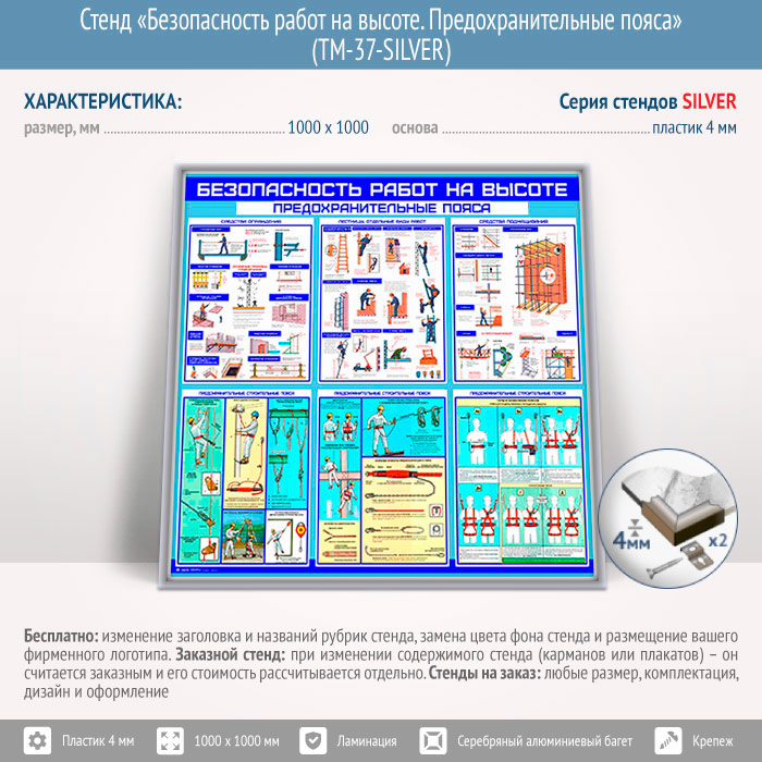 Стенд «Безопасность работ на высоте. Предохранительные пояса» (TM-37-SILVER) в Кызыле купить