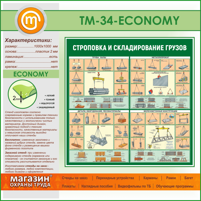 Стенд «Строповка и складирование грузов» (TM-34-ECONOMY) в Кызыле купить