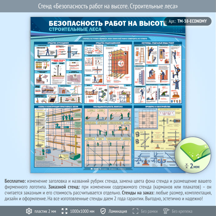 Стенд «Безопасность работ на высоте. Строительные леса» (TM-38-ECONOMY) в Кызыле купить