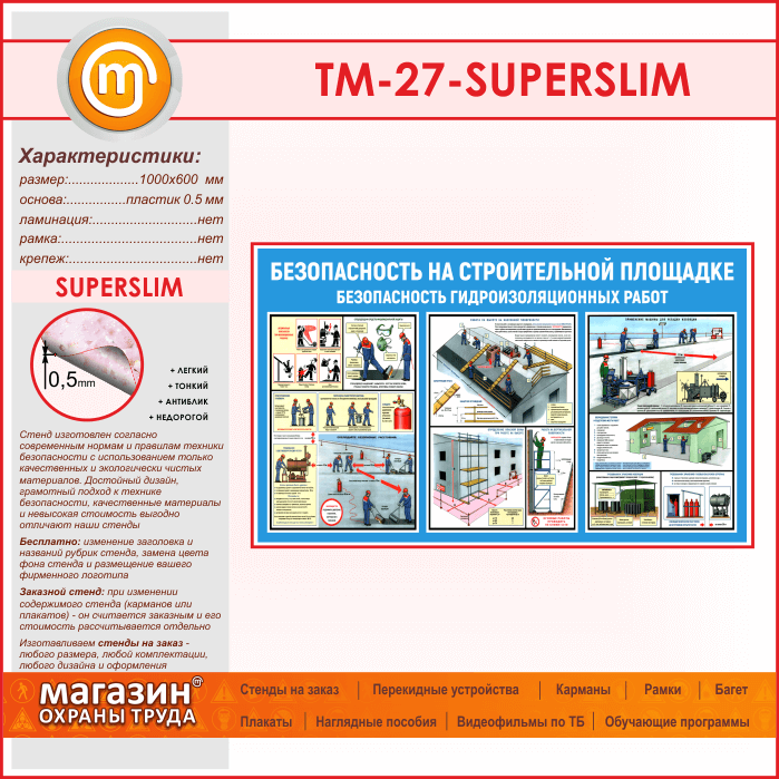 Стенд «Безопасность на строительной площадке. Безопасность гидроизоляционных работ» (TM-27-SUPERSLIM) в Кызыле купить