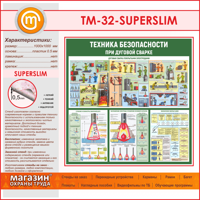 Стенд «Техника безопасности при дуговой сварке» (TM-32-SUPERSLIM) в Кызыле купить