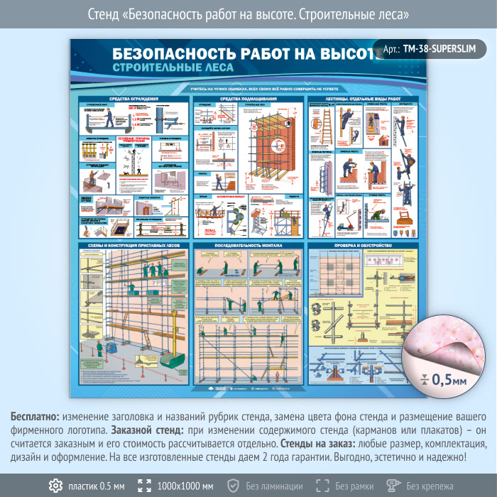 Стенд «Безопасность работ на высоте. Строительные леса» (TM-38-SUPERSLIM) в Кызыле купить